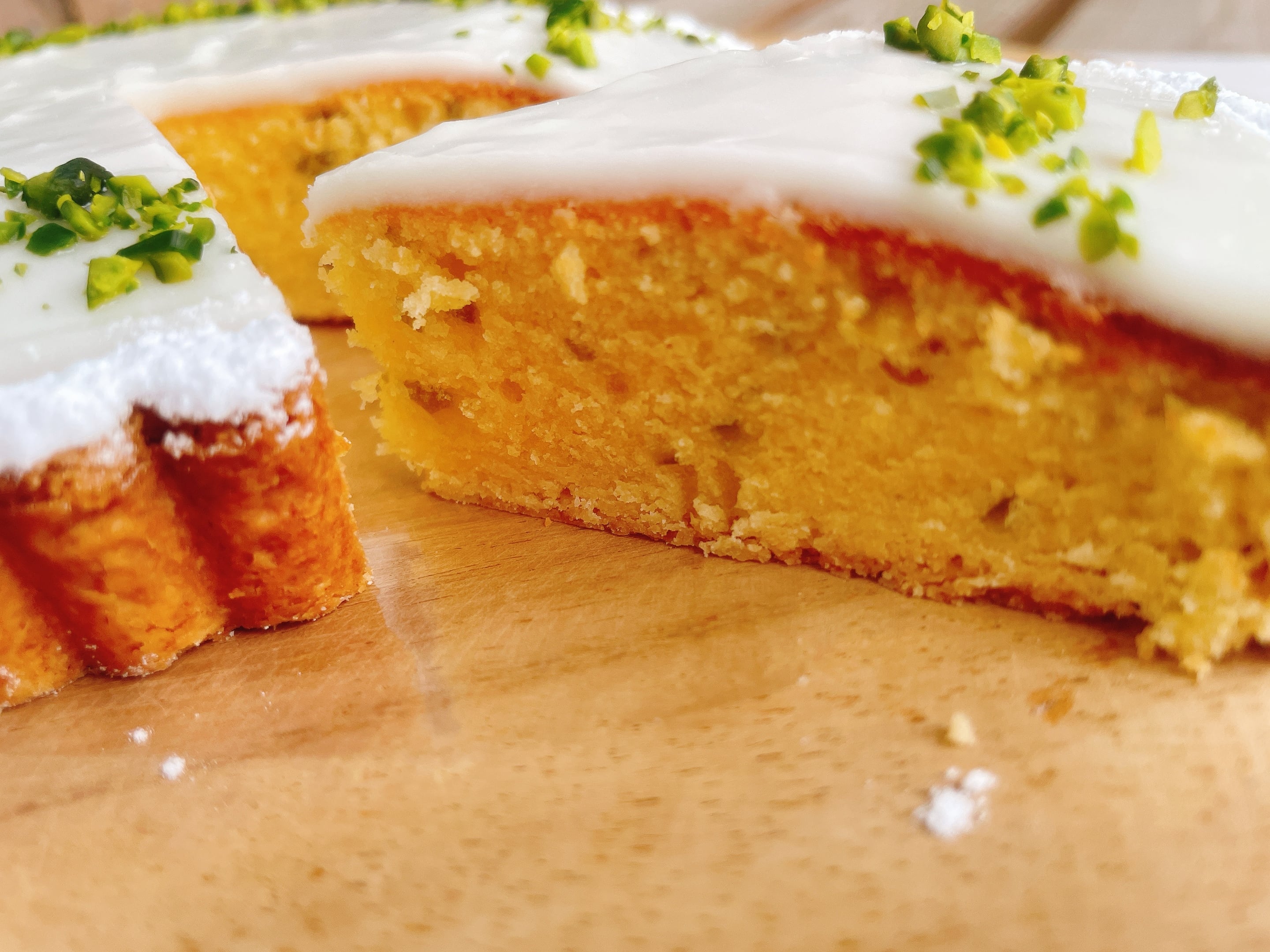 シークワーサーの果汁と、自家製のシークワーサーピール(果皮の砂糖漬け)が入ったバターケーキにたっぷりのシークワーサーアイシングで、柑橘の甘酸っぱく爽やかな風味が美味しい焼き菓子をタルト生地に詰めて焼きました。