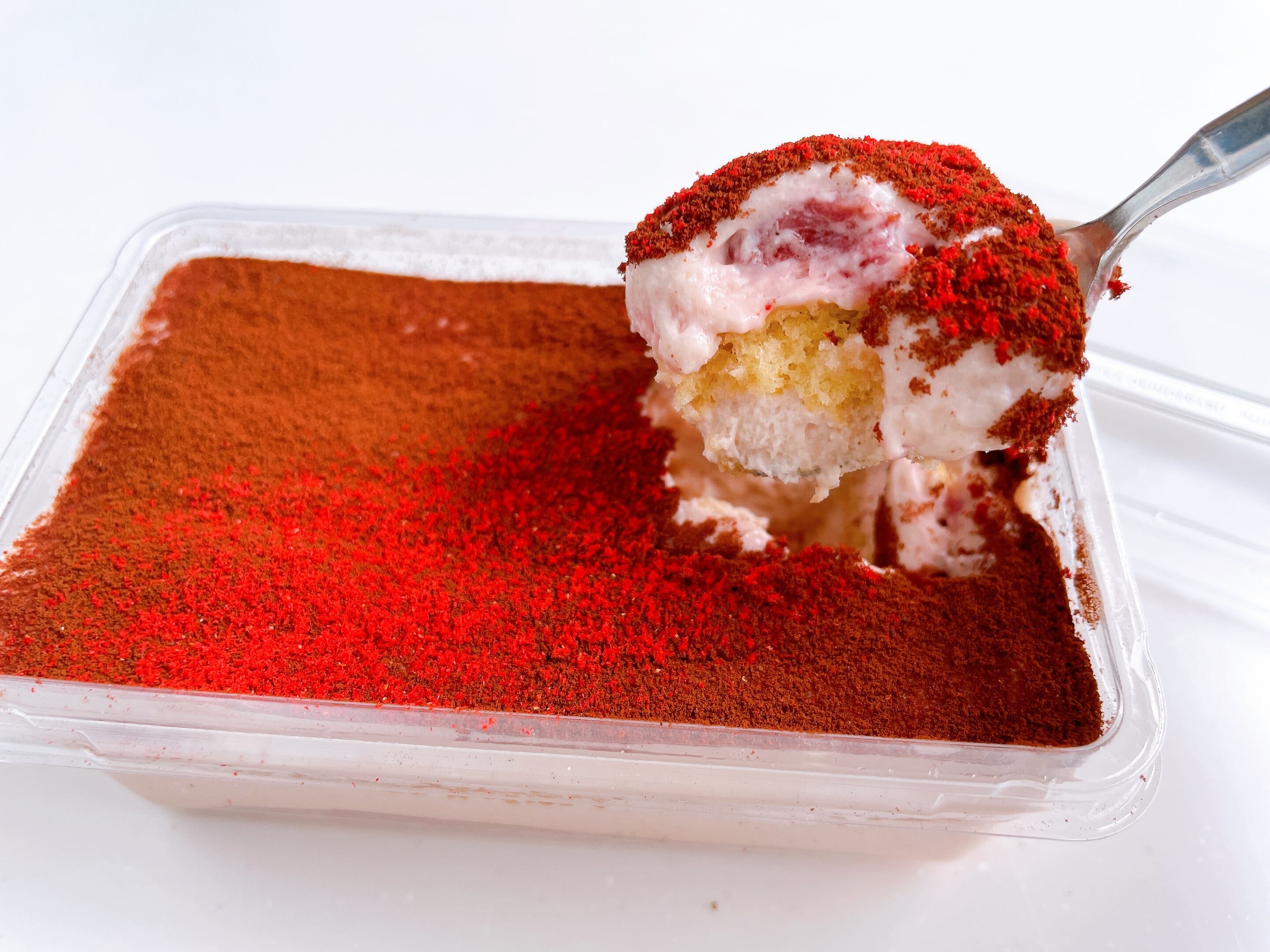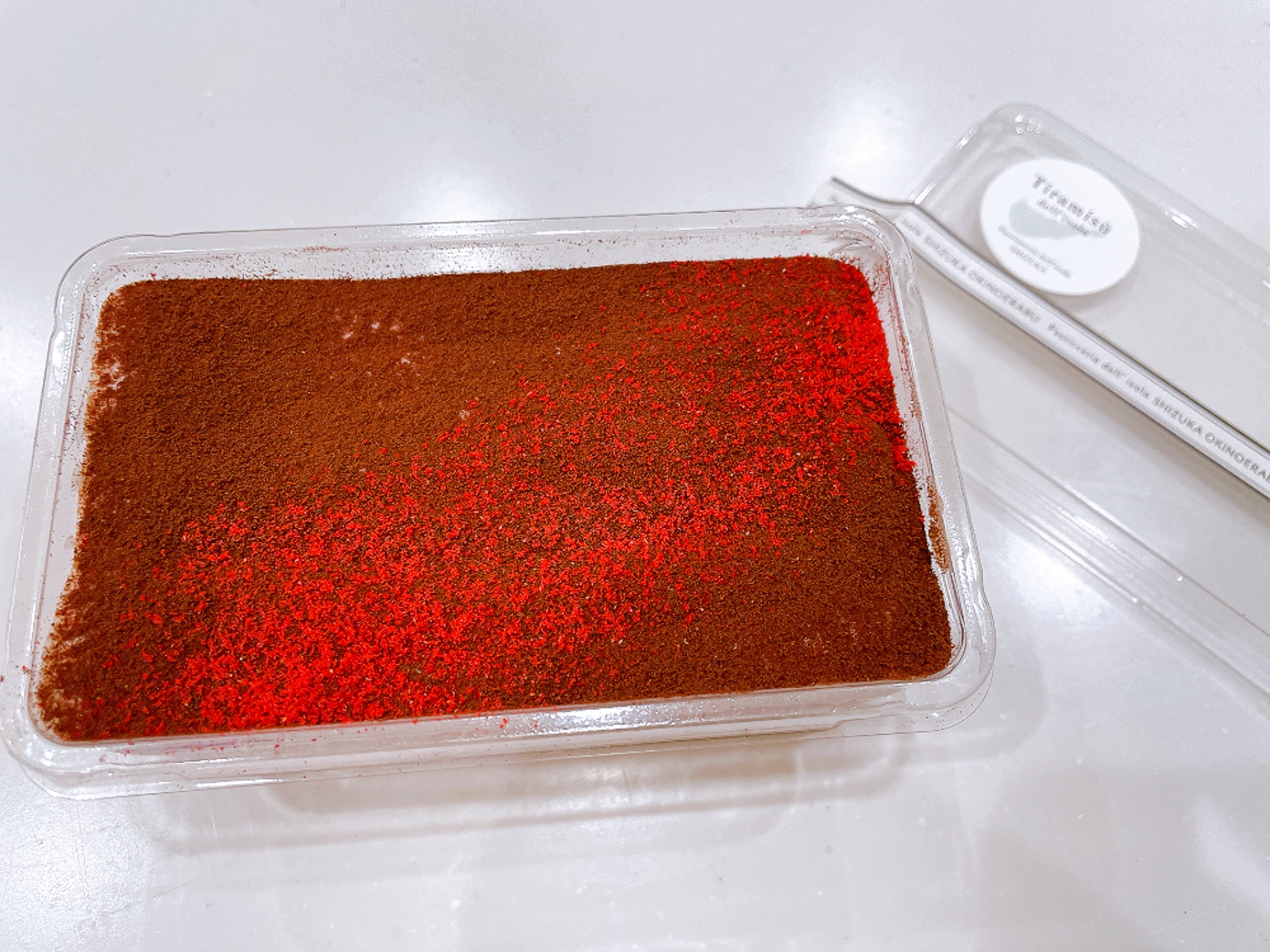 原材料名:マスカルポーネ(九州産)、リコッタチーズ、クリームチーズ、生クリーム、卵、グラニュー糖、小麦粉、いちご、ストロベリーパウダー、ココアパウダー、ゼラチン/安定剤(増粘多糖類)