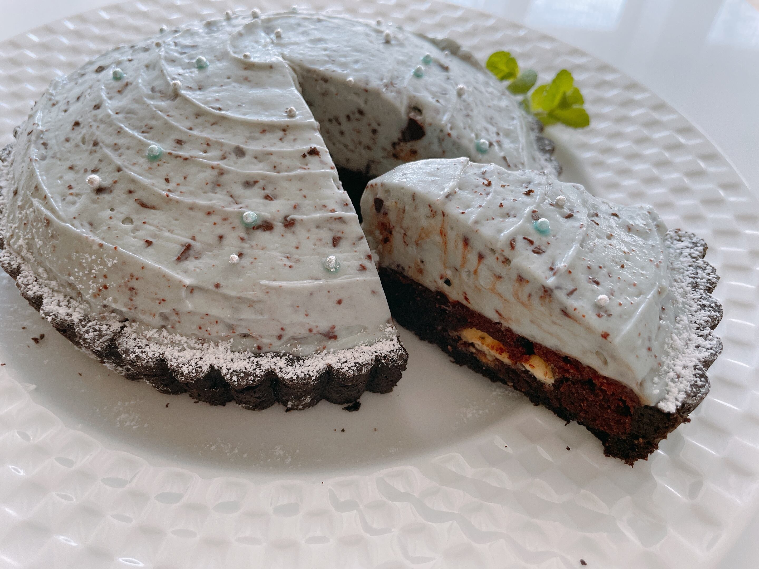ショコラタルト生地に、ホワイトチョコレート入りのほんのりミント味のショコラアーモンドクリーム。